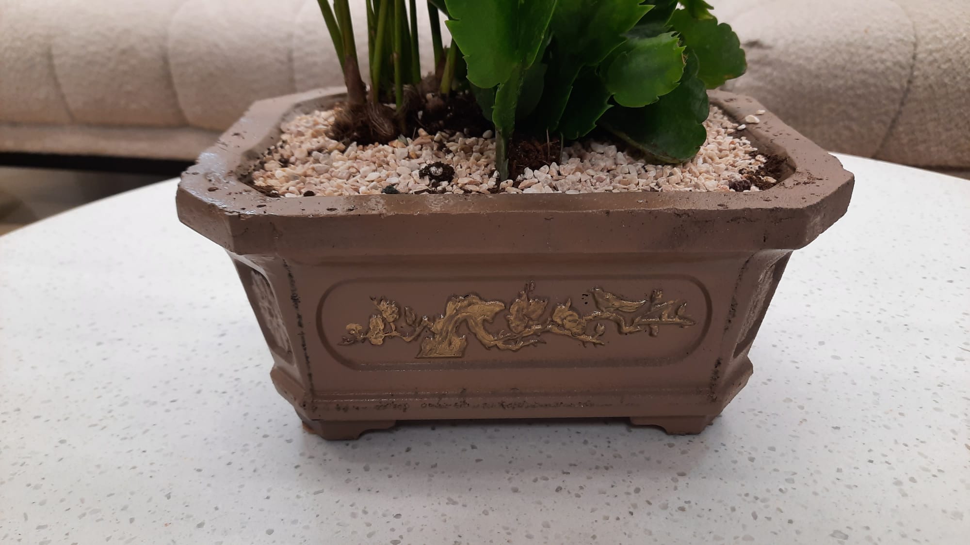 עציץ יפני חום – בונסאי בעבודת יד מבטון (העתק)